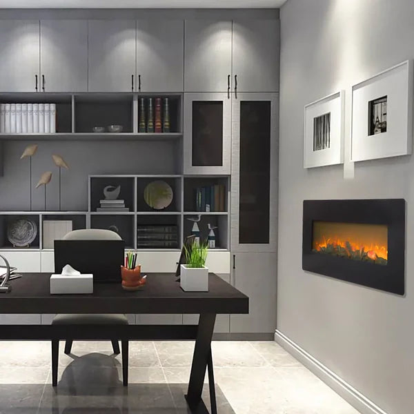 Wall Hanging Fireplace with remote is a portable and durable electric fireplace heater that will heat your place quickly. With 3D technology, this electric space heater could provide you the ambiance of real fire which can make your winter full of warmth. Just come and order it. 3D Realistic Flame Effect. The fire flickering in the electric fireplace diffuses a realistic and pleasant light in the room. Besides being warm, it also brings you a pleasant atmosphere of conviviality and romance. Warm and Comfortable. Dimensions of the electric fireplace - 42" x 4.2" x 17.3"(L x W x H). Airbetter Fireplace is an effective space heater with the appearance of a charming antique stove. The 1400W powerful heating capacity in this fireplace can warm a medium-size room within minutes. Three flame level: medium/low/high. Vintage and Elegant. Our wall-hanging heated fireplace features a durable frame and sturdy Wall Hanging design as well as the 1-sided panoramic viewing glass and a tempered glass door that you can open. Provide the ambiance of a real fire and match your home Christmas decoration by creating realistic dancing flames and burning log effects. Gorgeous Flame Effect and Emulation Logs. The emulation log set and ember bed sit in a black fireplace box and feature a realistic dancing flame and a burning log effect. Enjoy all-year-round fireplace views (with or without heat) but require no wasted time, effort, or money. Safe and Trustworthy. AirbetterFireplace is CSA certified, which means our products have passed all tests and met applicable standards for safety. Features: Three flame levels: medium, low and high. Remote control(Batteries included): As it is remote operated, you can breezily adjust flame level around the room. (note: Non-temperature adjustable). Simple installation: Easy installation on wall due to detailed instructions, just a few minutes, quality mounting hardware included. The control panel is easy to understand and use. Save energy: 42-inch perfect size and run on electricity, less cost and maintenance than traditional heating, is suitable for living rooms and apartments bedrooms. Specifications: Model: SF310-42AX. Power: 120V 60Hz 1400W. Operation Method: Body Button and Remote Control. Three Flame Level: Medium, Low and High. Work Decibel: Approximately 45dB. Certifications: CSA. Material: Iron & Glass. Color: Black. Weight: 35.5 lbs. / 16 kg. Package Includes 1 x Electric Fireplace. 1 x Glass Front. 1 x Mounting Bracket. 1 x Remote Control. 1 x User's Manual. 1 x Mounting Hardware Set(2*Small Screw 2*Large Screw 2*Wall Anchor).